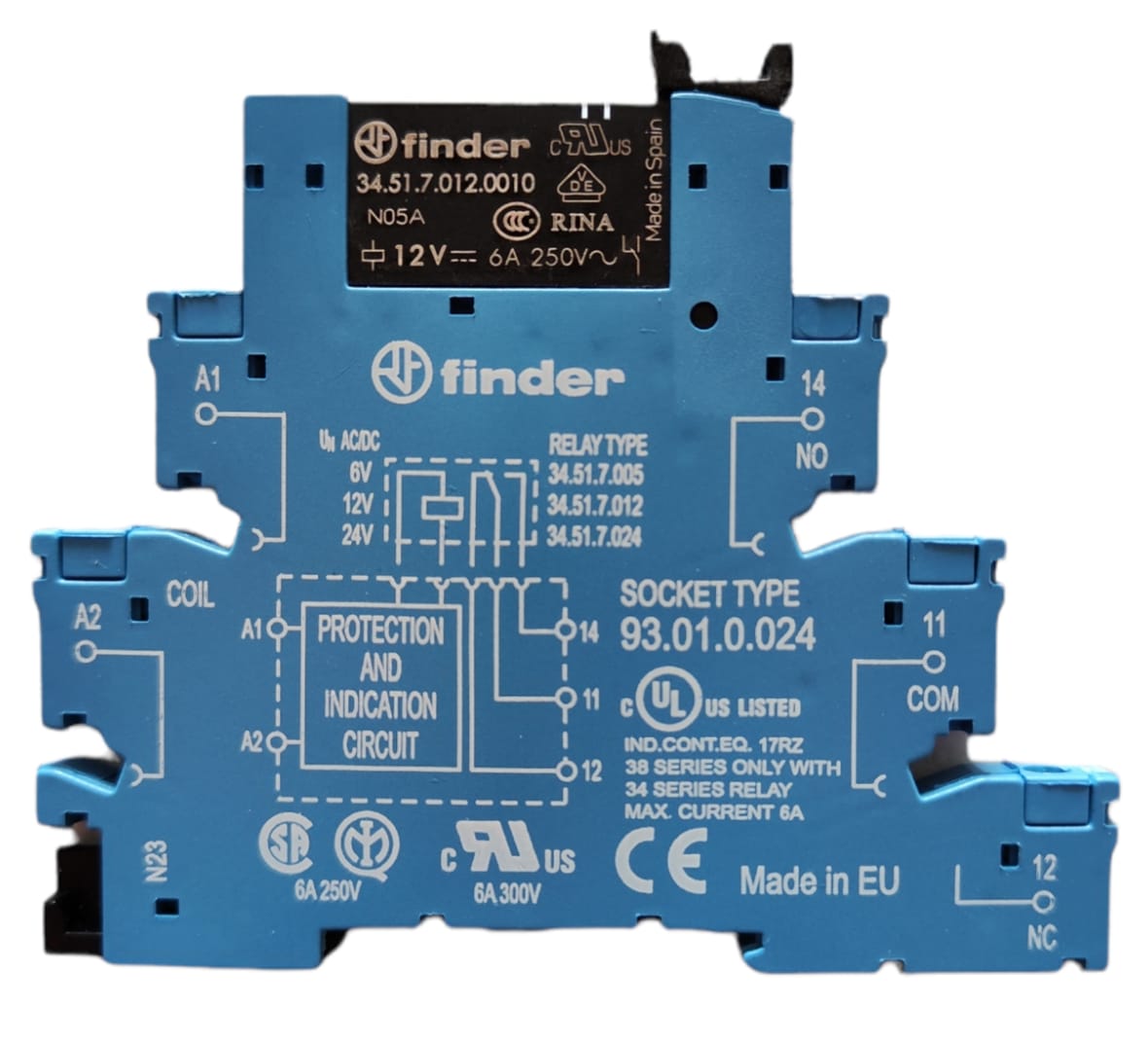 Serie 38 38.51.0.012.0060 RELÉ ELECTROMECÁNICO (12AC/DC) 6A, MARCA FINDER