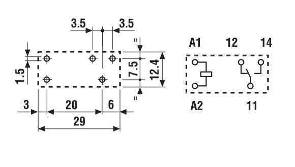 MINI RELEVADOR DE POTENCIA MONTAJE EN CIRCUITO IMPRESO O EN ZÓCALO 1 CONTACTO CONMUTADO 5 PINES, 10A ⇒ TENSIÓN NOMINAL DE LA BOBINA: 230 VAC ⇒ TENSIÓN NOMINAL EN CONTACTOS: 250 VAC ⇒ CORRIENTE NOMINAL: 10A ⇒ CONFIGURACIÓN: 1 CO (SPDT)